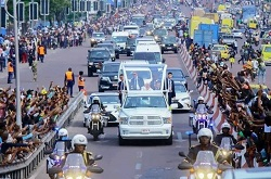 Le pape François dans sa papamobile, saluant les milliers de Congolais venus l'accueillir/Prisca Materanya/LCA
